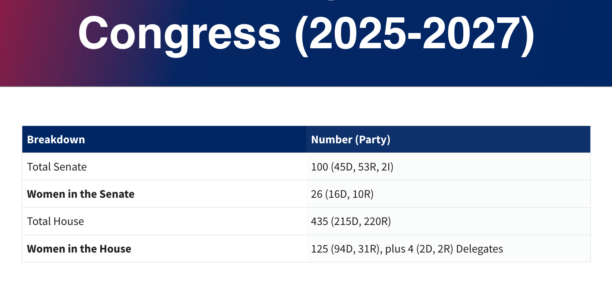 • The massive disparity between men and women in the Senate and House of Representatives (see breakdown below).